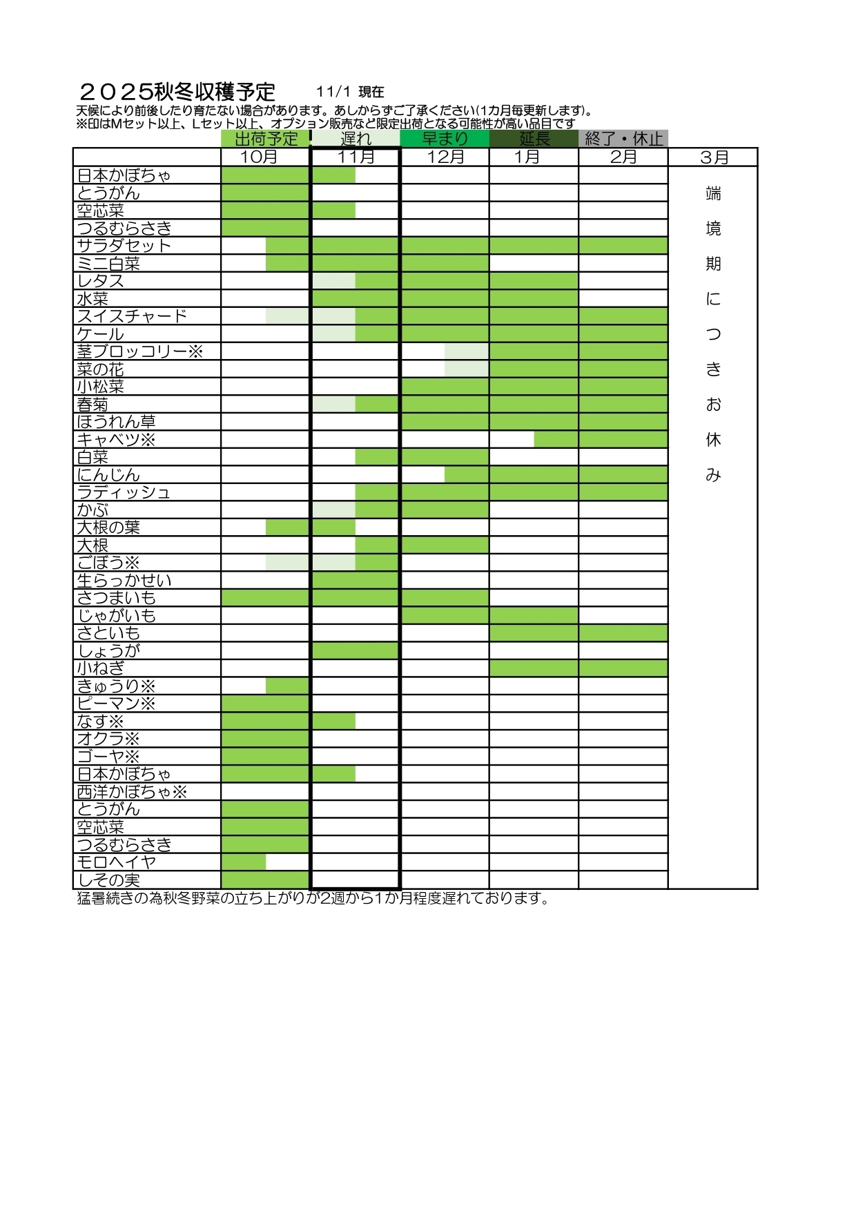Mセットの内容に以下のお野菜が加わります。