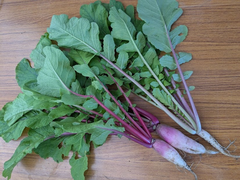 東京葛飾で発祥の伝統大根。小さいながら滋味たっぷりの濃い味。根と葉一緒に味噌汁が最高。根は漬物や煮物、葉は炒め物やおひたしにも。