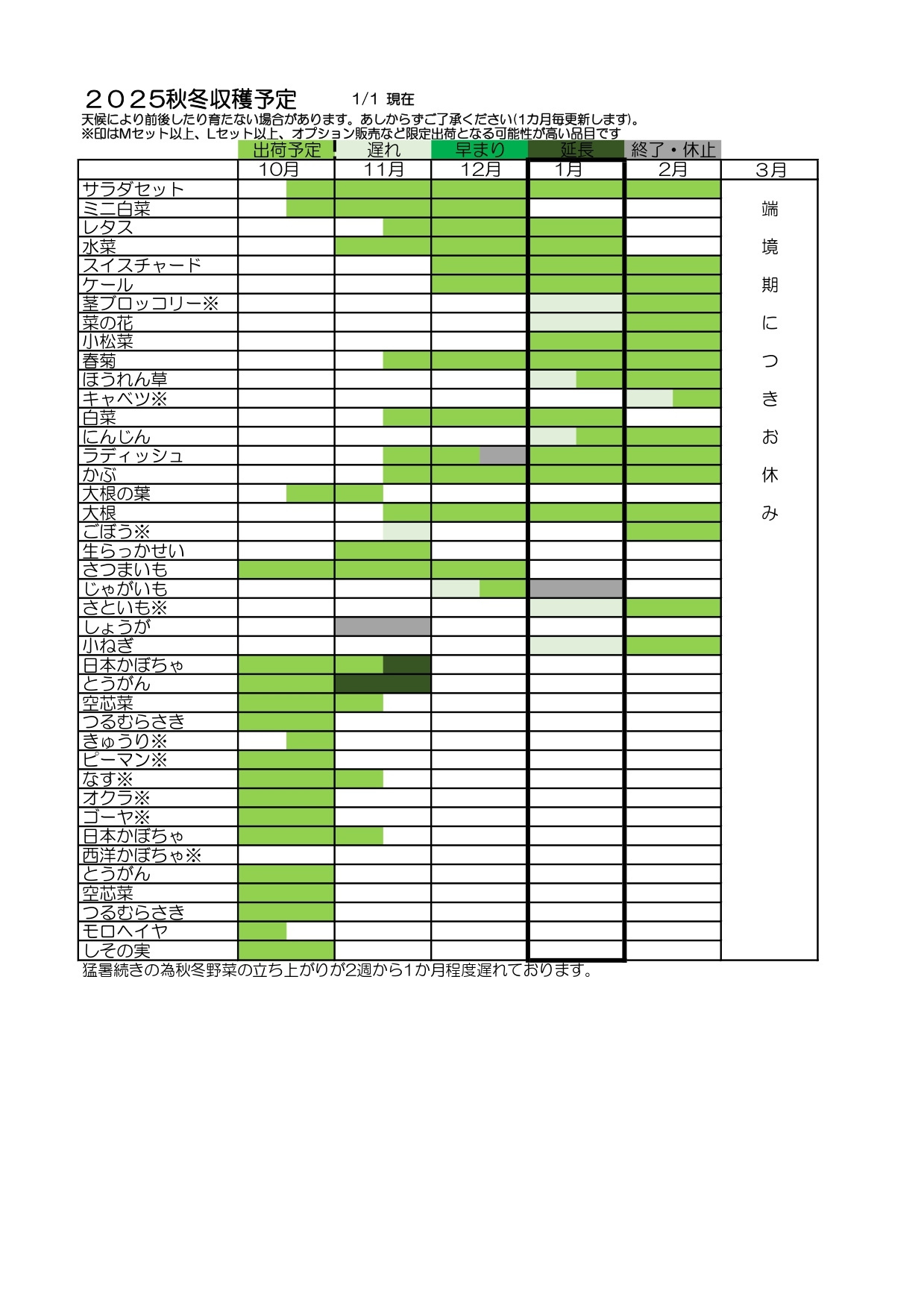 Mセットの内容に以下のお野菜が加わります。