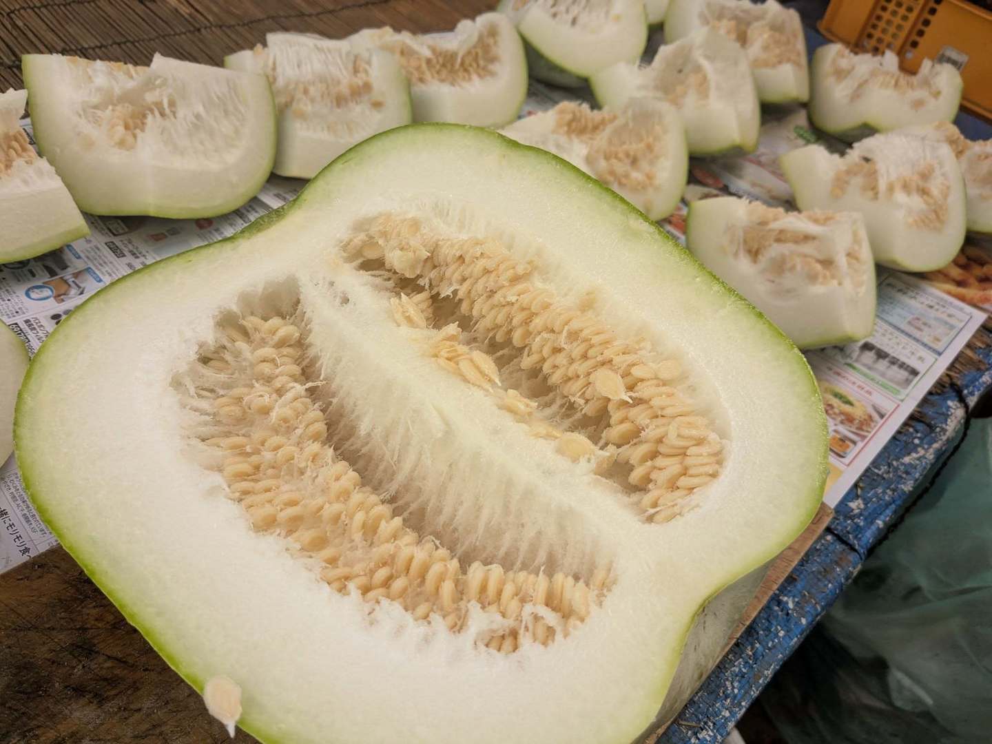 みずみずしく味香りが強い固定種とうがん。スープや煮物などに最適。