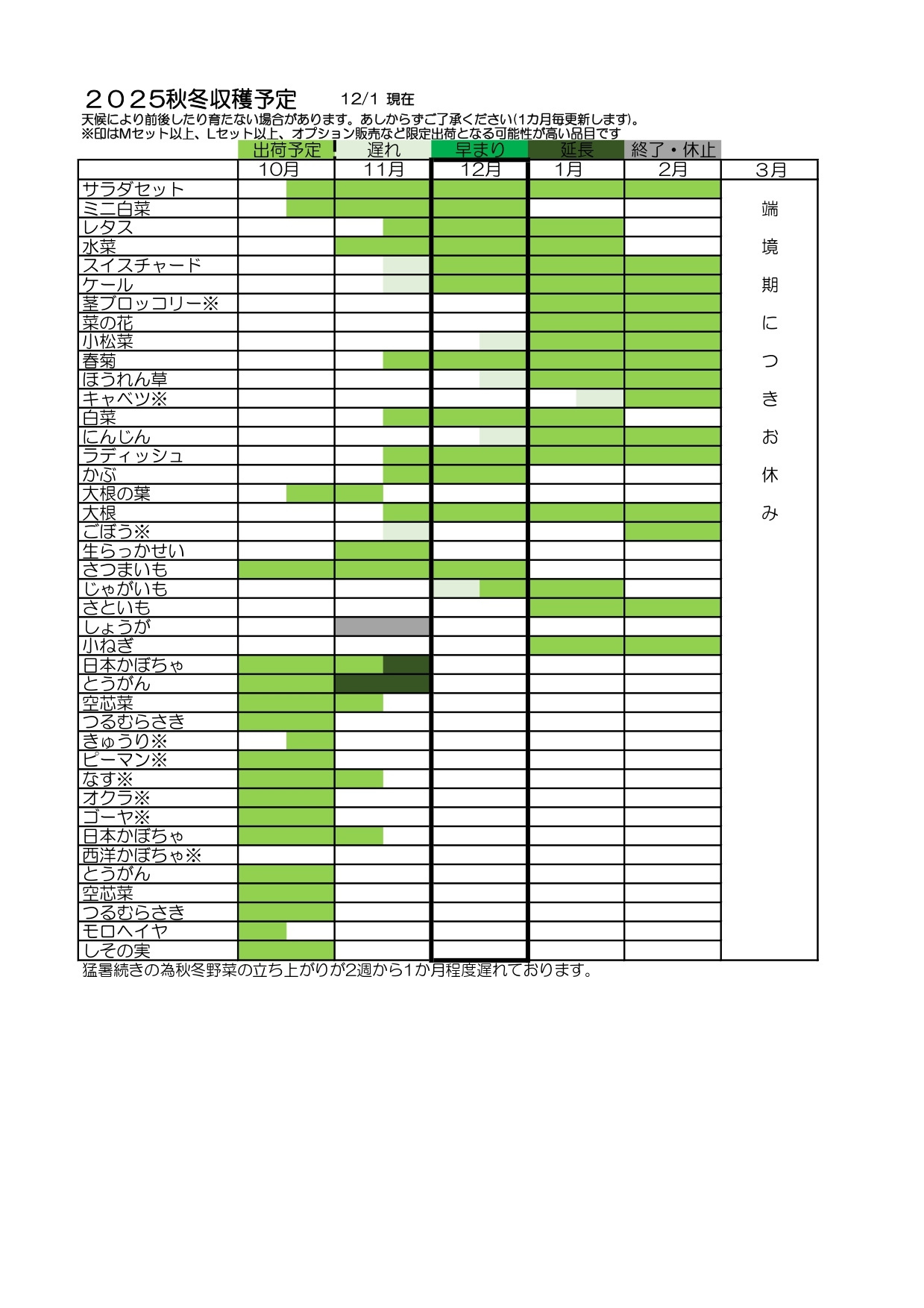 Mセットの内容に以下のお野菜が加わります。