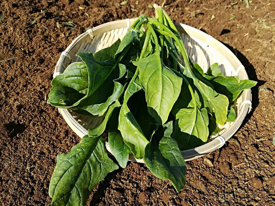 希少な固定種ほうれん草。肉厚で味が強く、赤根も甘くておいしい。おひたし、炒め物、お味噌汁などに。