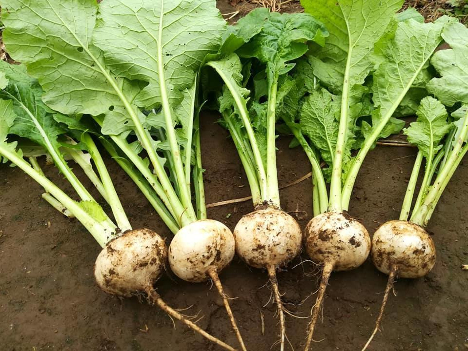 東京葛飾で発祥の伝統大根。小さいながら滋味たっぷりの濃い味。根と葉一緒に味噌汁が最高。根は漬物や煮物、葉は炒め物やおひたしにも。