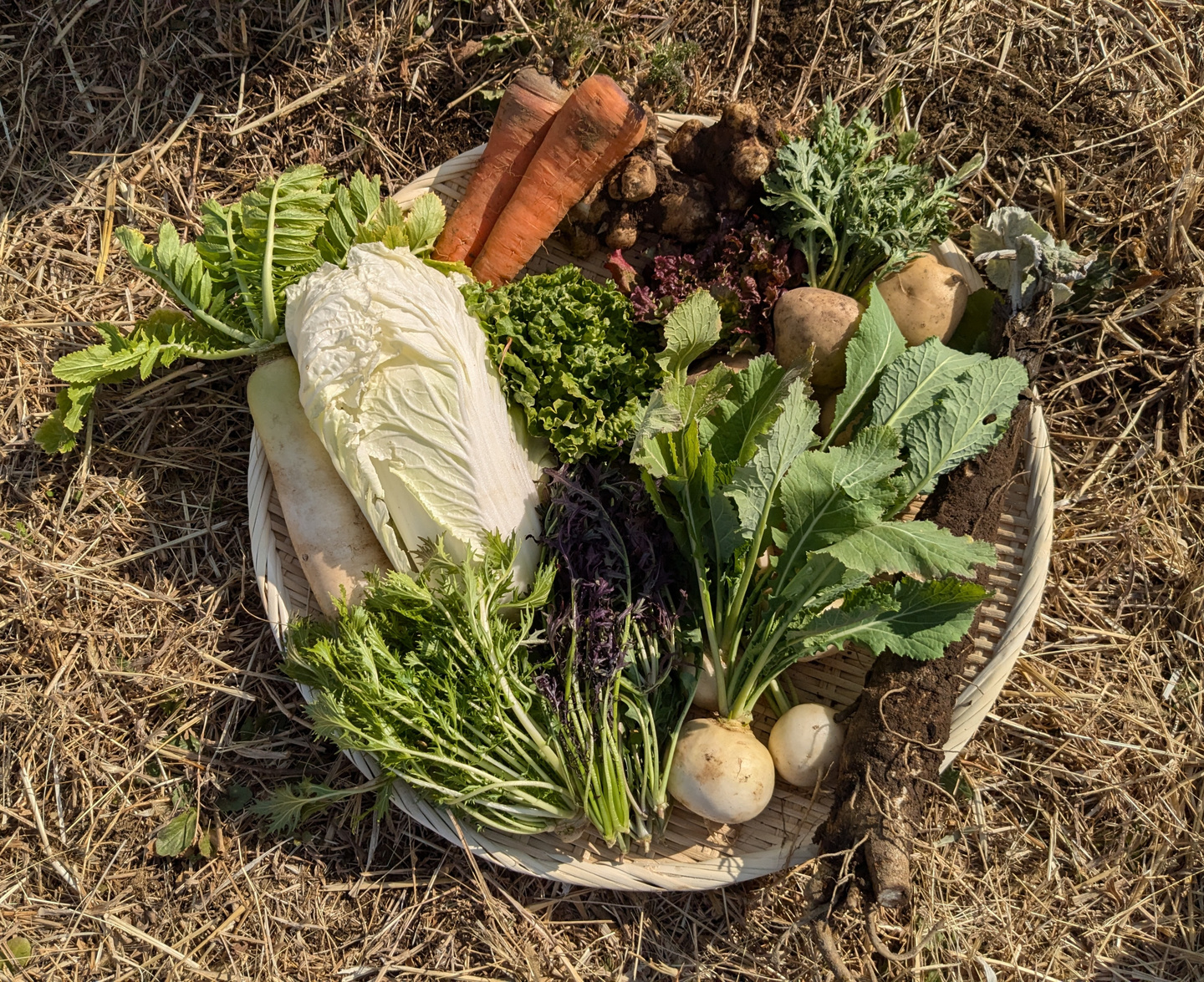 自然栽培で育てた野菜は、多少の虫食いもありますが、安心安全で栄養たっぷりです。